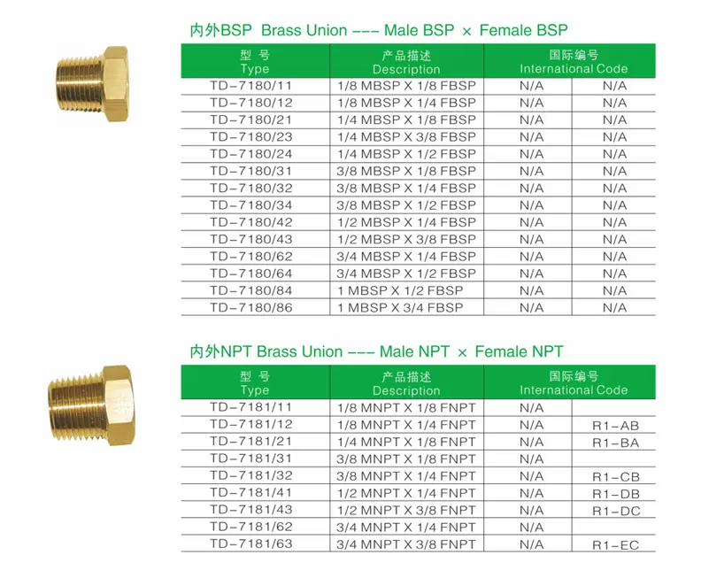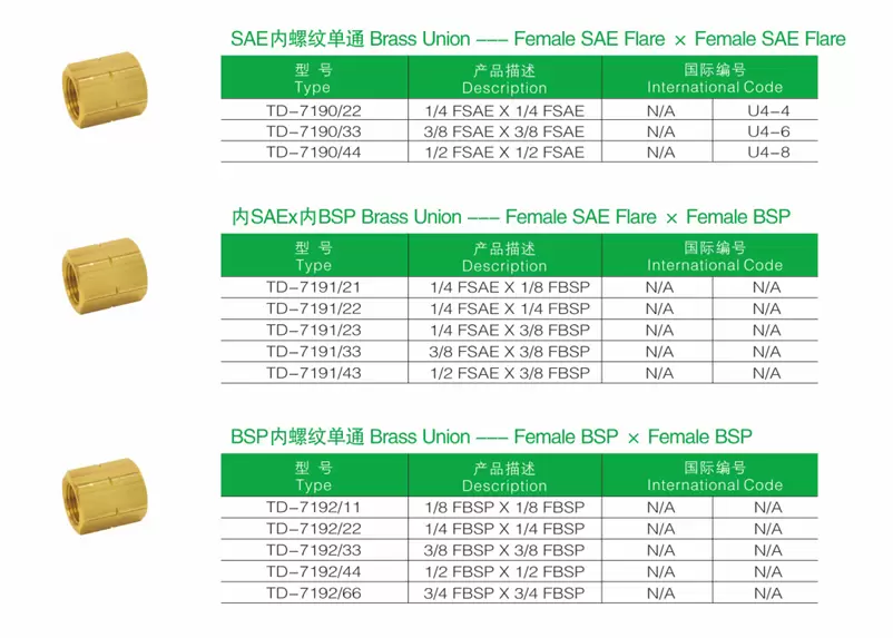 其他的黄铜接头和单通均用“A”级黄铜棒料加工而成, 所有螺纹都用CNC数控车床全自动加工,螺纹精密,表面光洁,密封性能良好。