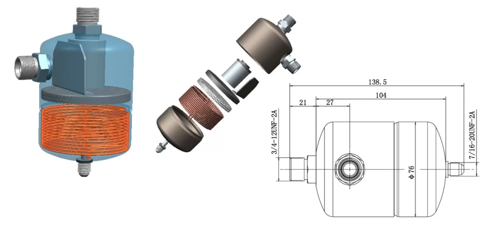 油分式储油器的功能是去除并存储压缩机排出的气体中的油,使其能回到压缩机。利用离心式分离油的原理, 在保证最小压降的前提下达到最好的分油效果。它可以将分离出来的油储存在下面的储油段中,通过油位平衡器将油分配到每台压缩机曲轴箱。 应用广泛,常用于并联压缩机组,是为高压油路控制系统准备的, 同时需配套使用高压回油电子油位控制器。